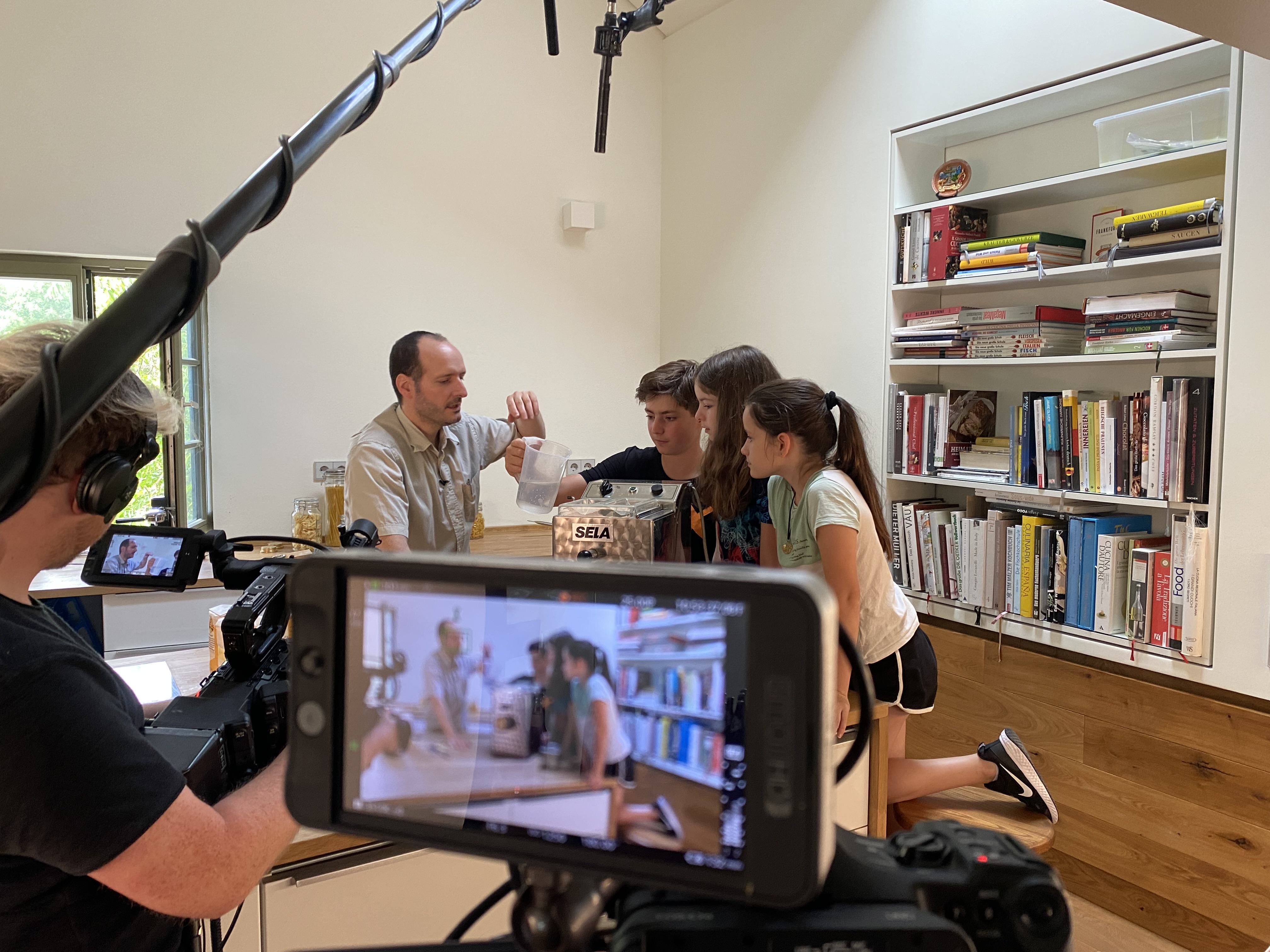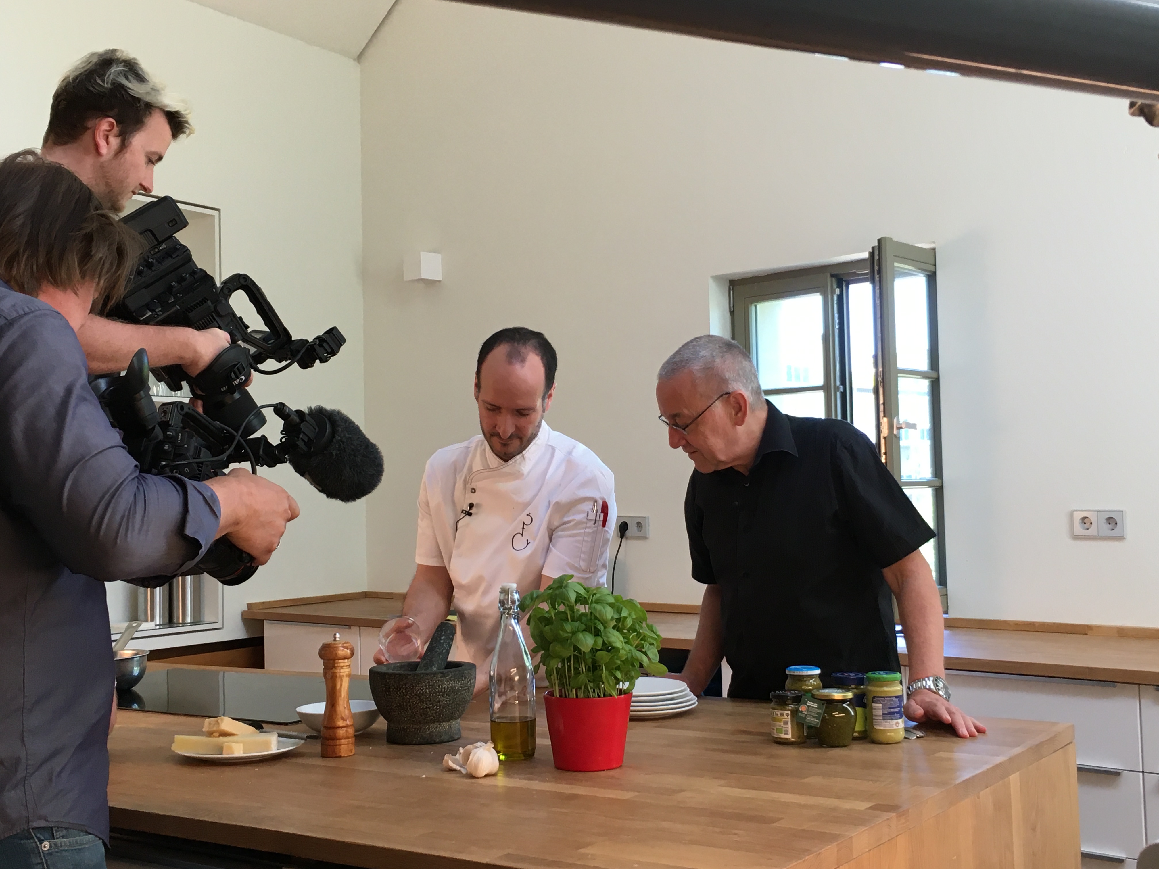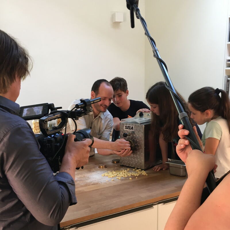 Zwei Tage war das Filmteam aus Mainz im Bornheimer Ratskeller zu Gange! Es gab kiloweise Nudeln, schweißtreibende Drehtage und stundenlange Frage-Antwort-Situationen mit dem Koch und Geschäftsführer Mario Furlanello sowie dem Physiker Prof. Dr. Thomas Vilgis. Sein Lehrstuhl am Max-Planck-Institut befasst sich ausschließilich mit der Physik von Lebensmitteln, zusammen mit Mario Furlanello hat er ein Buch zum Thema Pasta geschrieben (siehe unten).