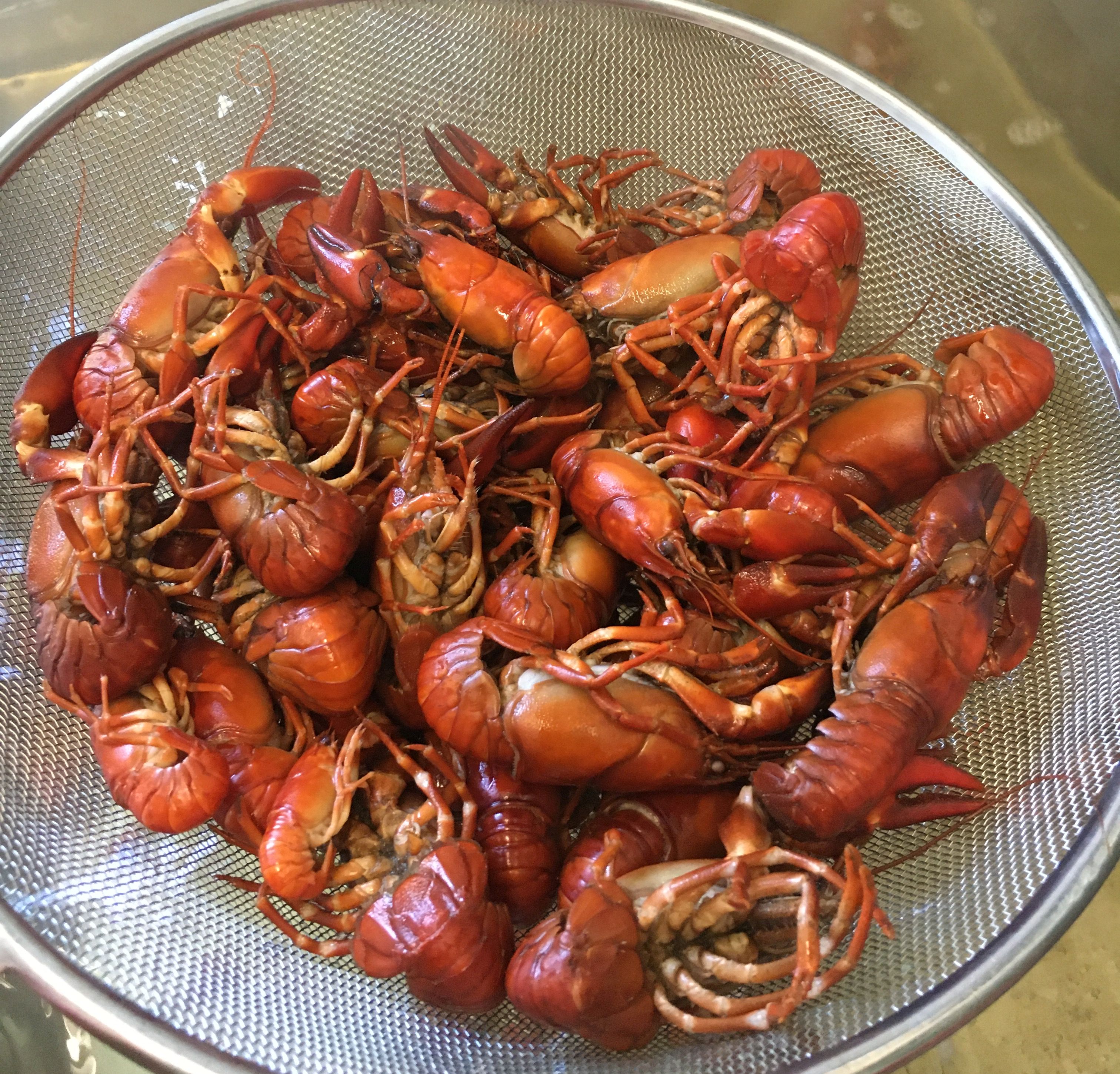 Zumindest diese Woche noch, denn dann gibt es bei Familie Speth keinen Spargel mehr. Das wiederum ist nicht weiter schlimm, denn wir haben erstens über den Lauf der letzten Wochen sehr viel Bio-Spargel geschält, sodass wir über das nahende Ende der Saison nicht richtig traurig sind und zweites, weil von der oben genannten Gesamtmenge nach dem Pulen sage und schreibe knappe 2kg Flusskrebsfleisch übrig sind. Viele Portionen sind das somit nicht, und selbst wenn das Gericht vorrangig durch junges Gemüse geprägt wird, brauchen wir nur noch wenige Stangen dafür.