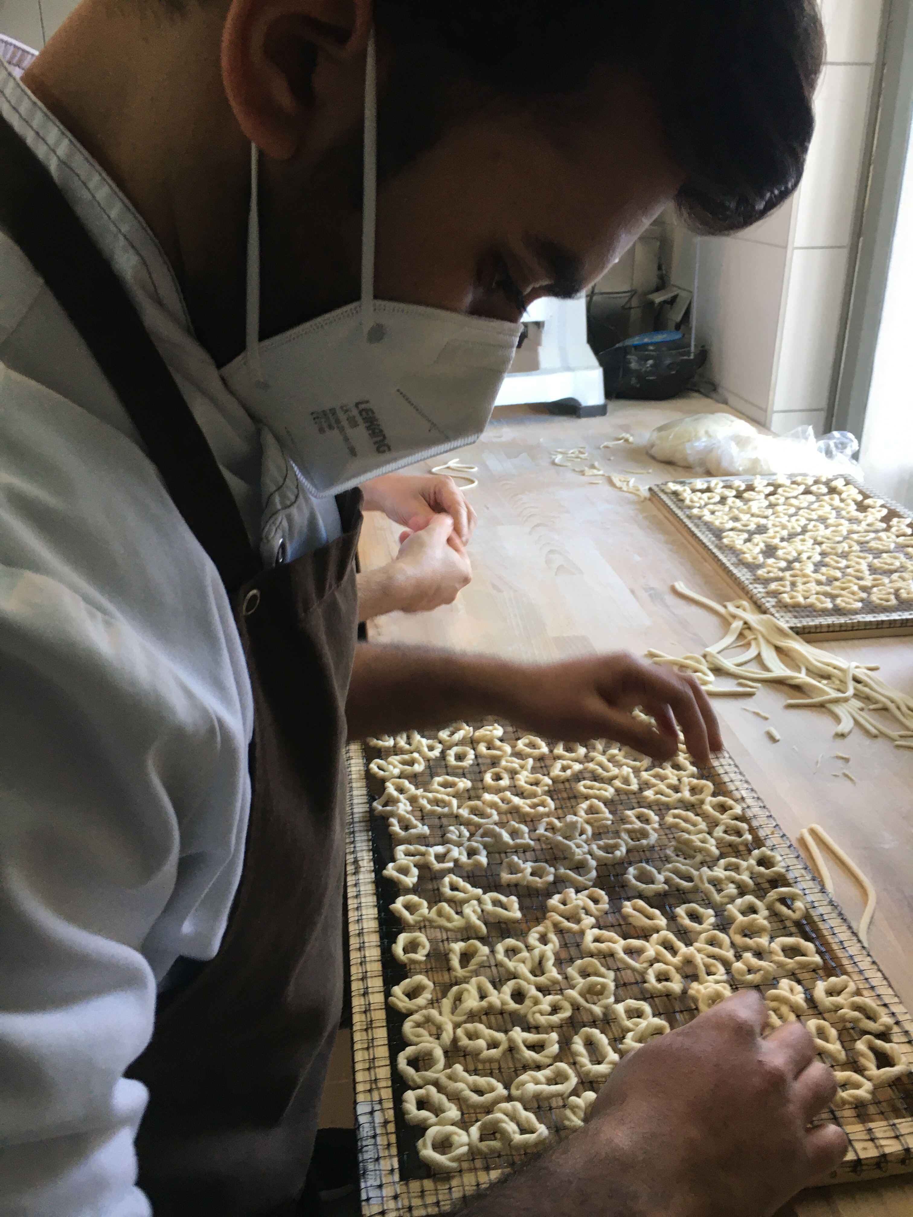 Diese in Sardinien nur hohen Festtagen vorbehaltene Nudelsorte passt unserer Meinung nach ideal zum Valentinstag, weil sie aus zwei ineinander verschlungenen Teigringen geformt wird. Ein irrer Aufwand, den nur der Anlass und die Liebe rechtfertigen. Deswegen stellen wir uns auch dieses Jahr wieder hin, um diese Leckerei aus Hartweizengrieß, Salz und Wasser für Sie herzustellen.
